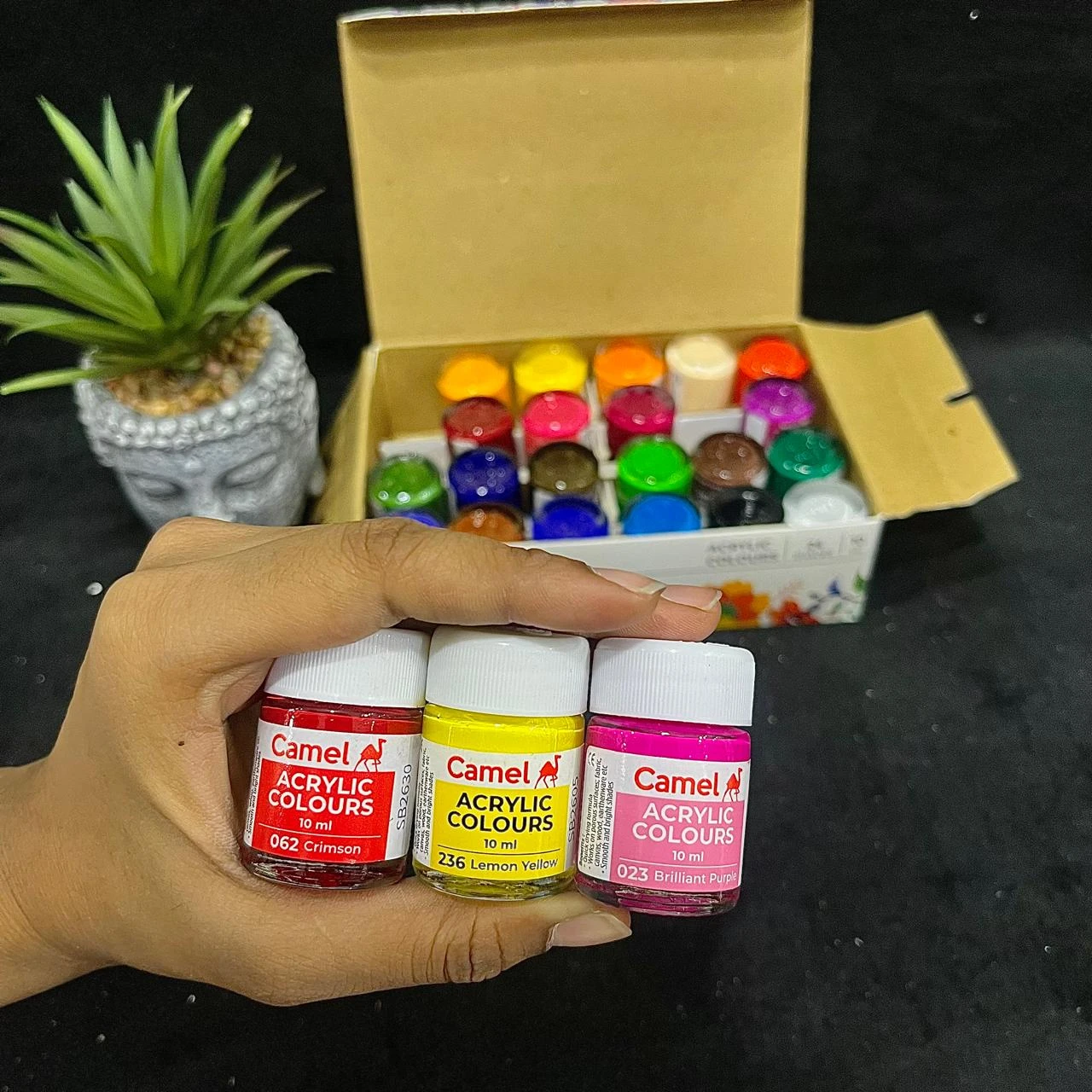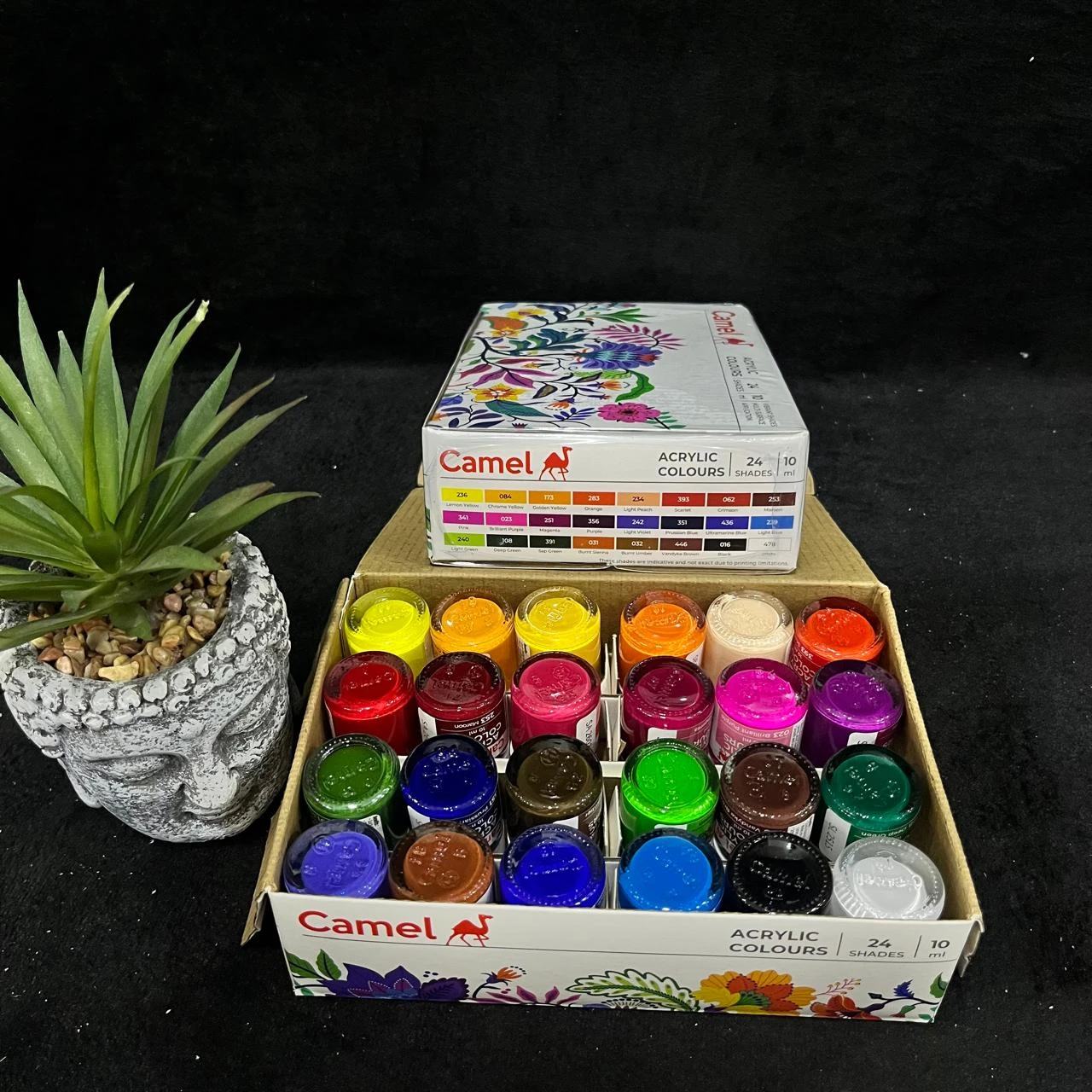 Camel Acrylic Colours Box – 24 Shades Acrylic Paint Set (10ml Each) | Artist & Craft Painting Colors