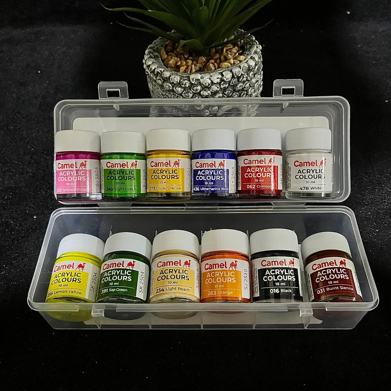 Camel Acrylic Colours Set – 12 Shades (10ml Each) with Plastic Storage Box | Acrylic Paint Set for Art & Craft