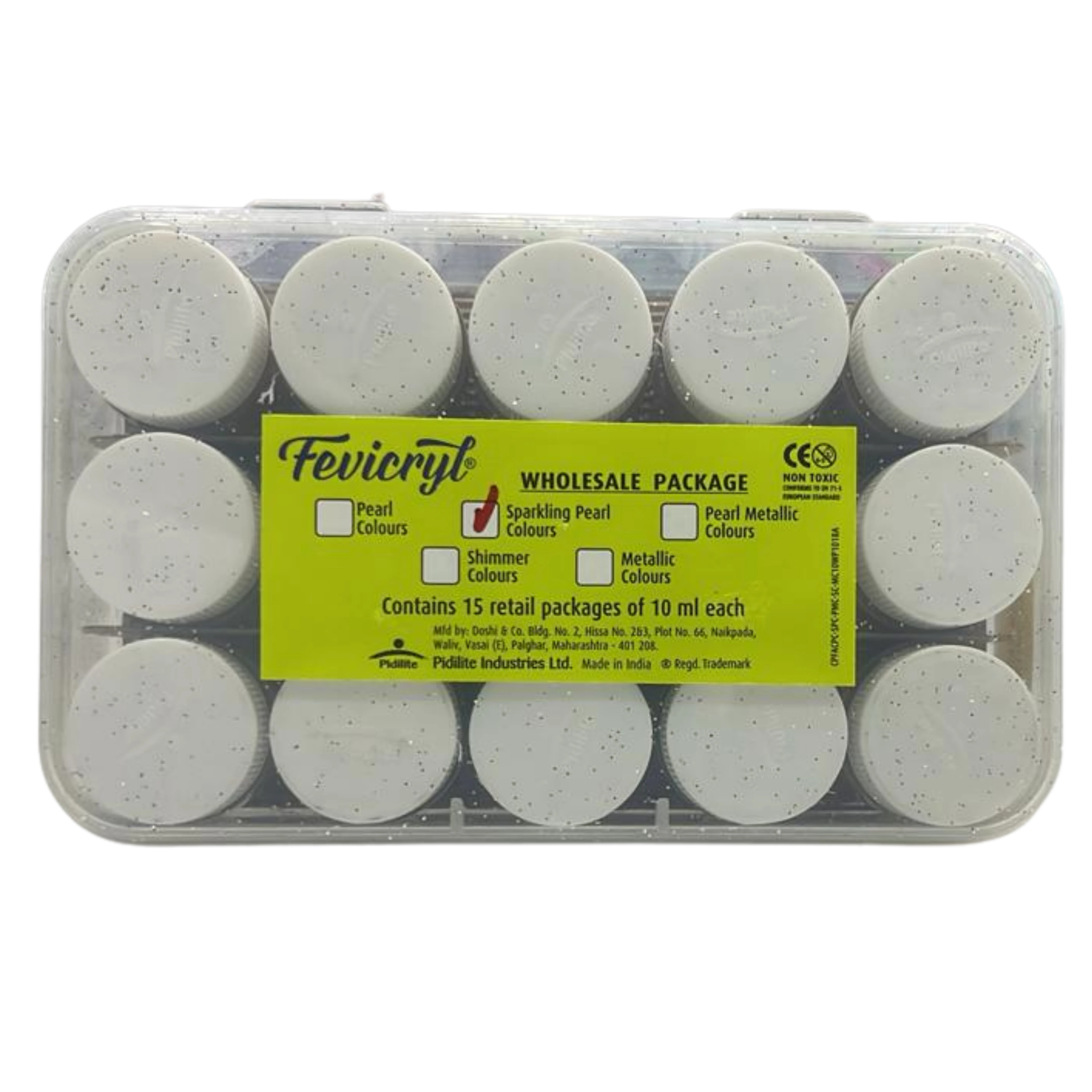 Fevicryl 15-Piece Sparkling Pearl Craft Paint Set - 10ml Each