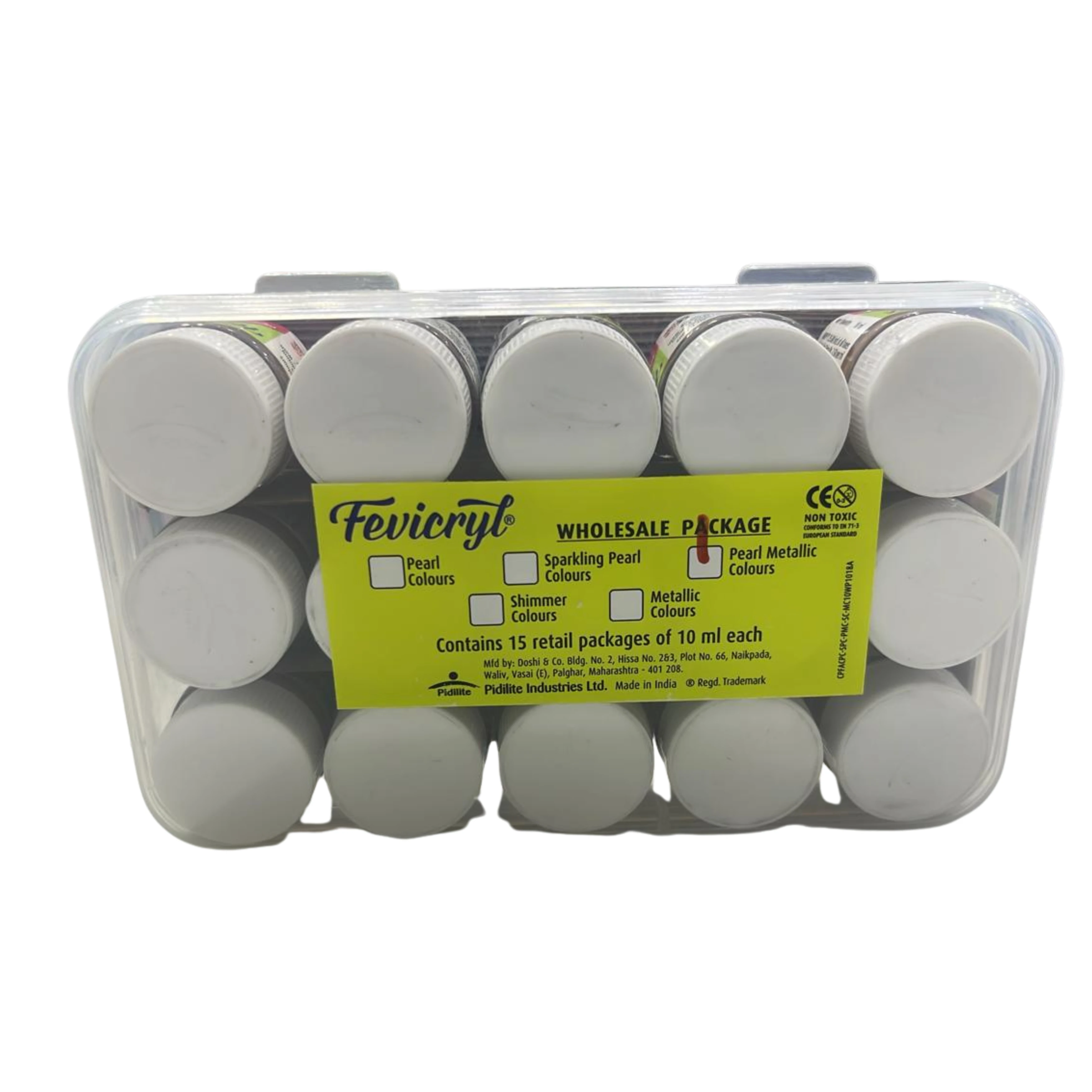 Fevicryl Pearl Metallic Colours Wholesale Pack - 15 Bottles x 10ml
