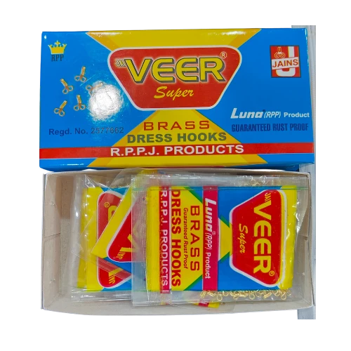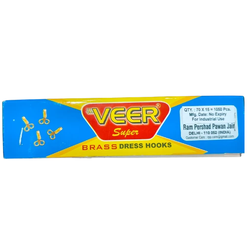 Jai Veer Brass Dress Hooks, Luna (RPP) Product, 70 x 15 Pack (1050 Hooks), Gold Tone