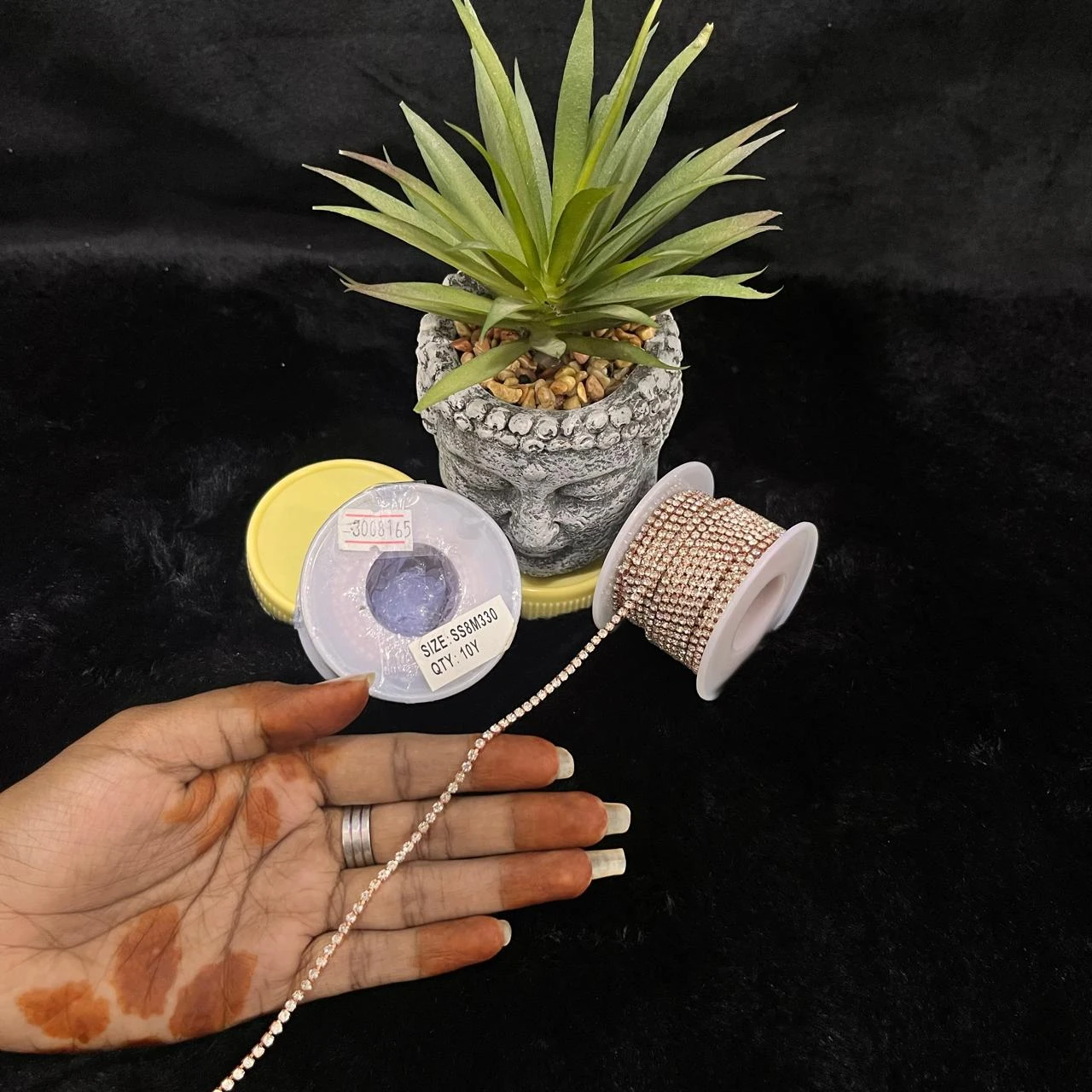 Premium 24PP (SS12) Rose Gold Rhinestone Cup Chain – 10 Yards | High-Shine Crystal Trim for Bridal Wear, Jewelry Making & DIY Crafts