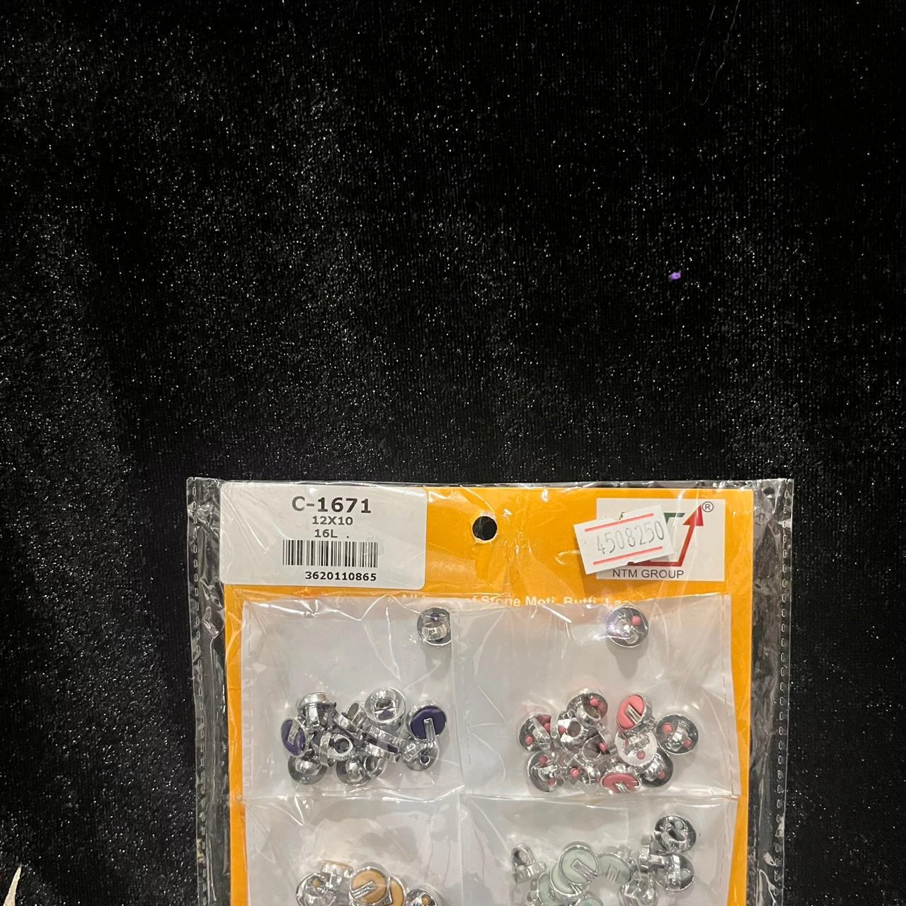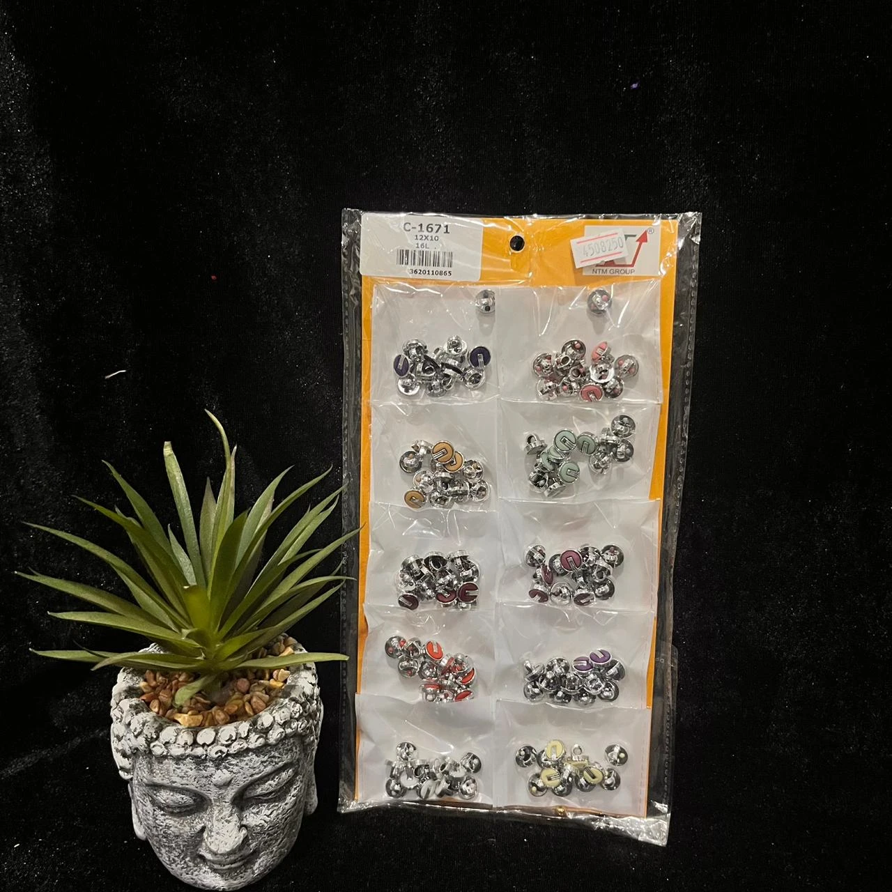 Show Buttons Pack Sheet – NO :- C1671 (Assorted Metal Buttons) | 10 Colors × 12 Pieces Each