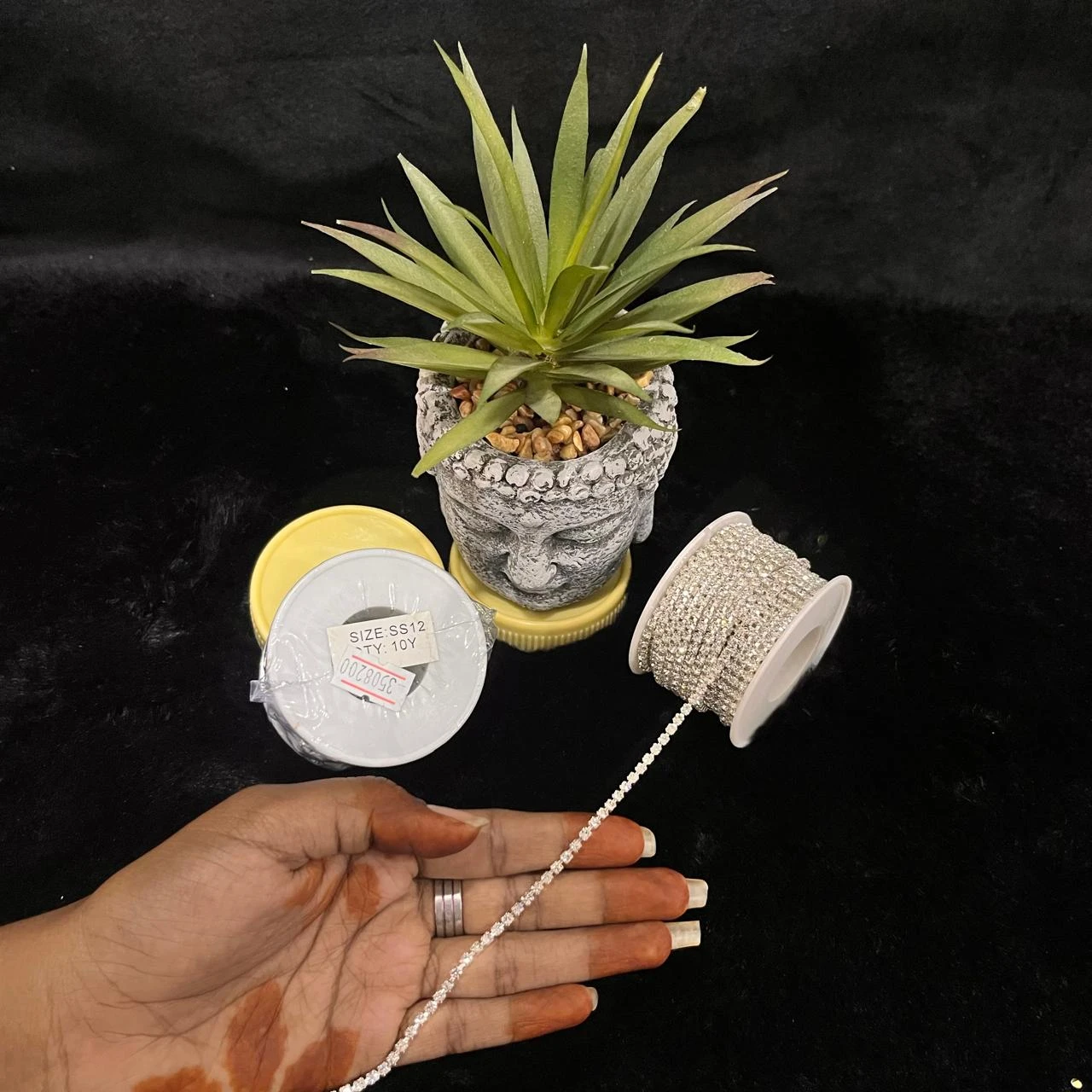 24PP (SS12) Silver Rhinestone Cup Chain – 10 Yards | High-Clarity Crystal Trim for Fashion Design, Jewelry Making & Wedding Embroidery