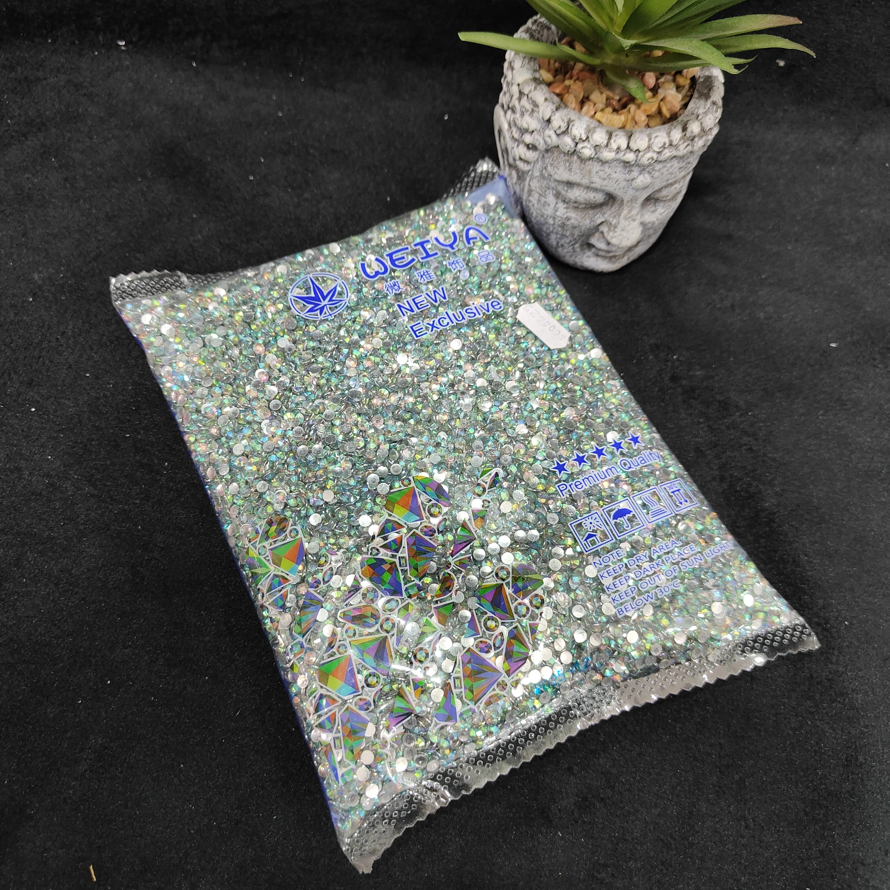 4MM AB Crystal Kundan Stones 500g Pack – Round Flatback Rainbow Shine Kundans for Aari Work, Maggam Work & Embroidery