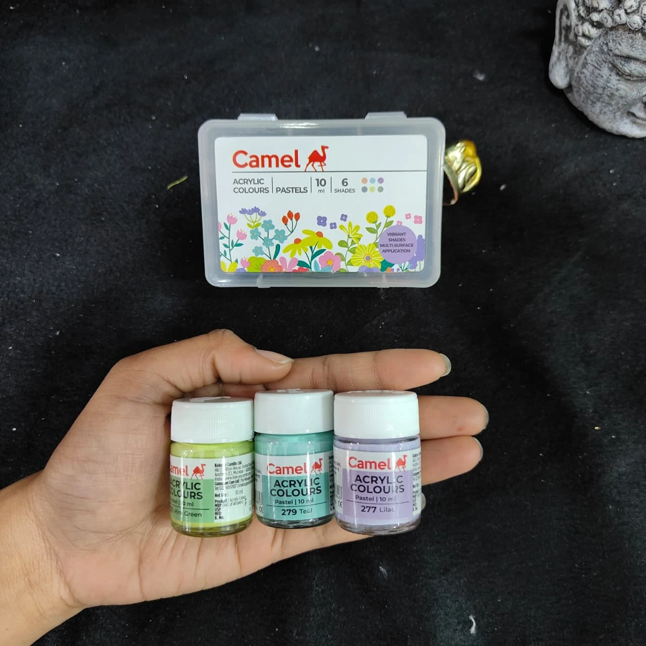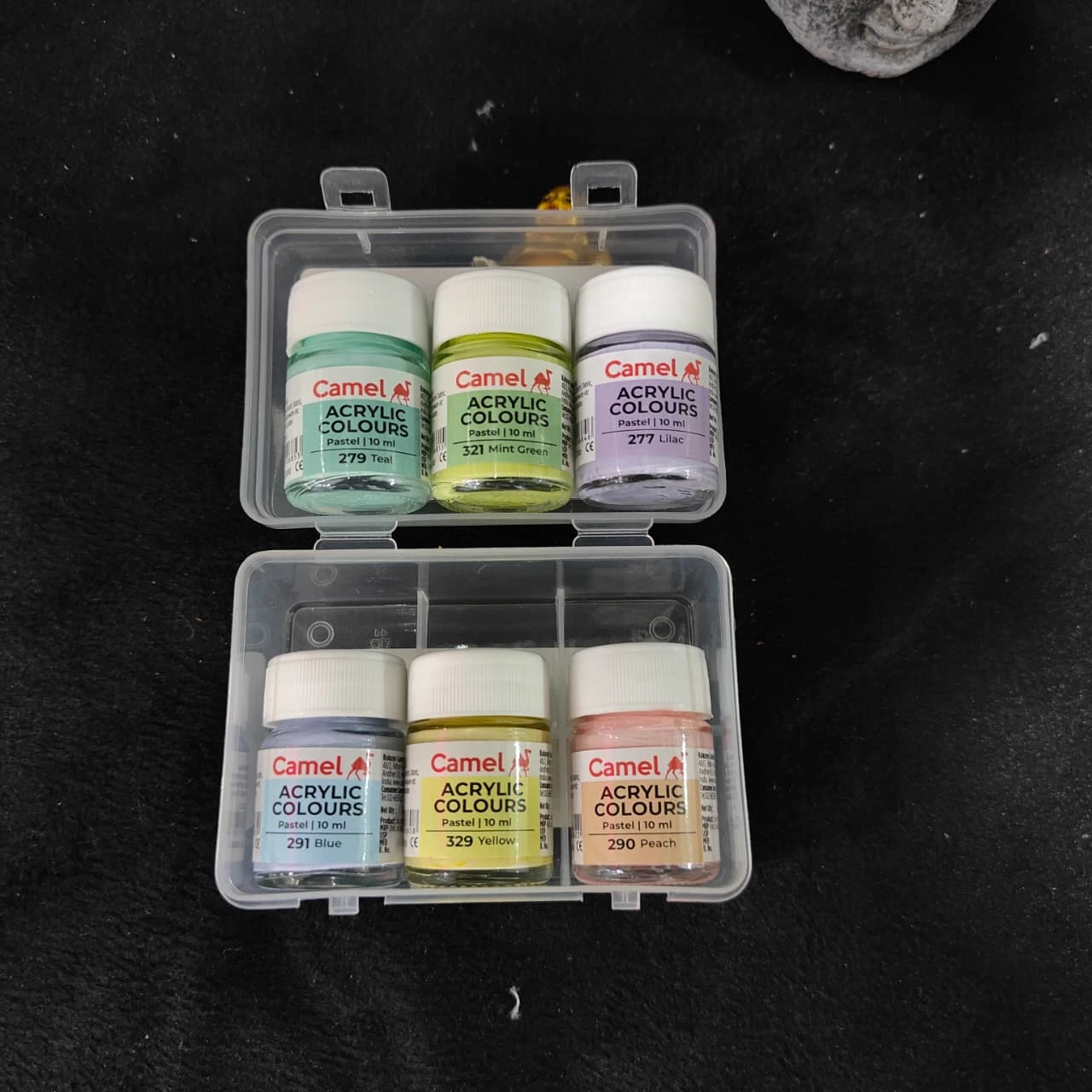 Camel Pastels Acrylic Colours Set – 6 Shades (10ml Each) with Plastic Storage Box | Metallic Paint for Art & Craft