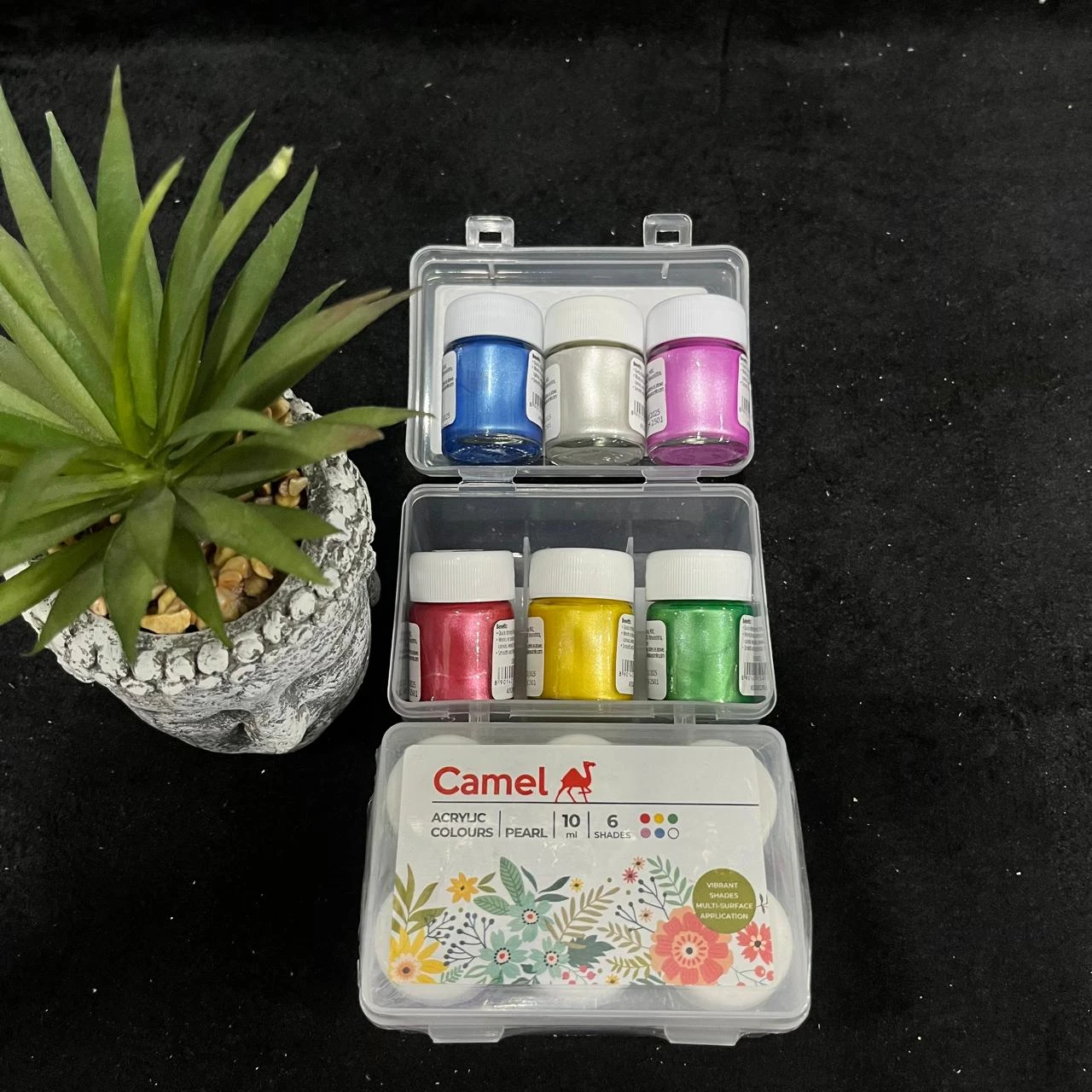 Camel Pearl Acrylic Colours Set – 6 Shades (10ml Each) with Plastic Storage Box | Pearl Finish Acrylic Paint for Art & Craft