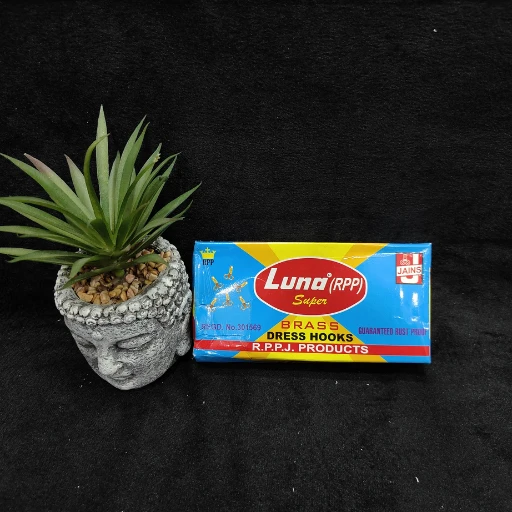 Luna (RPP) Super Brass Dress Hooks – Golden Sewing Hooks | 80 Pcs per Pack | 15 Packs Box | Rust Proof Tailoring Hooks
