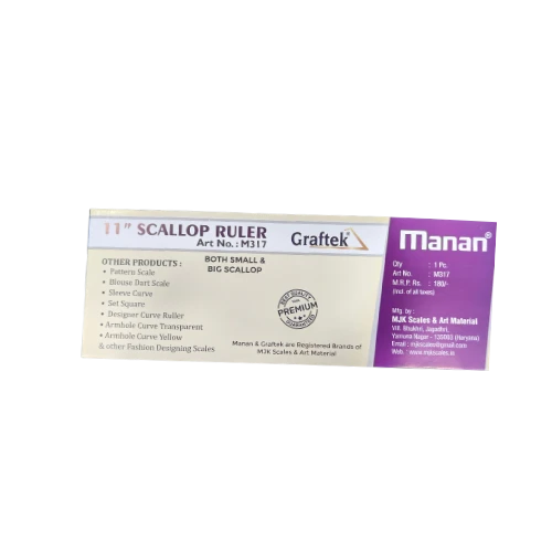 Manan Graftek 11" Scallop Ruler (M317) – Dual Edge (Small & Big Scallop) for Fashion Designing