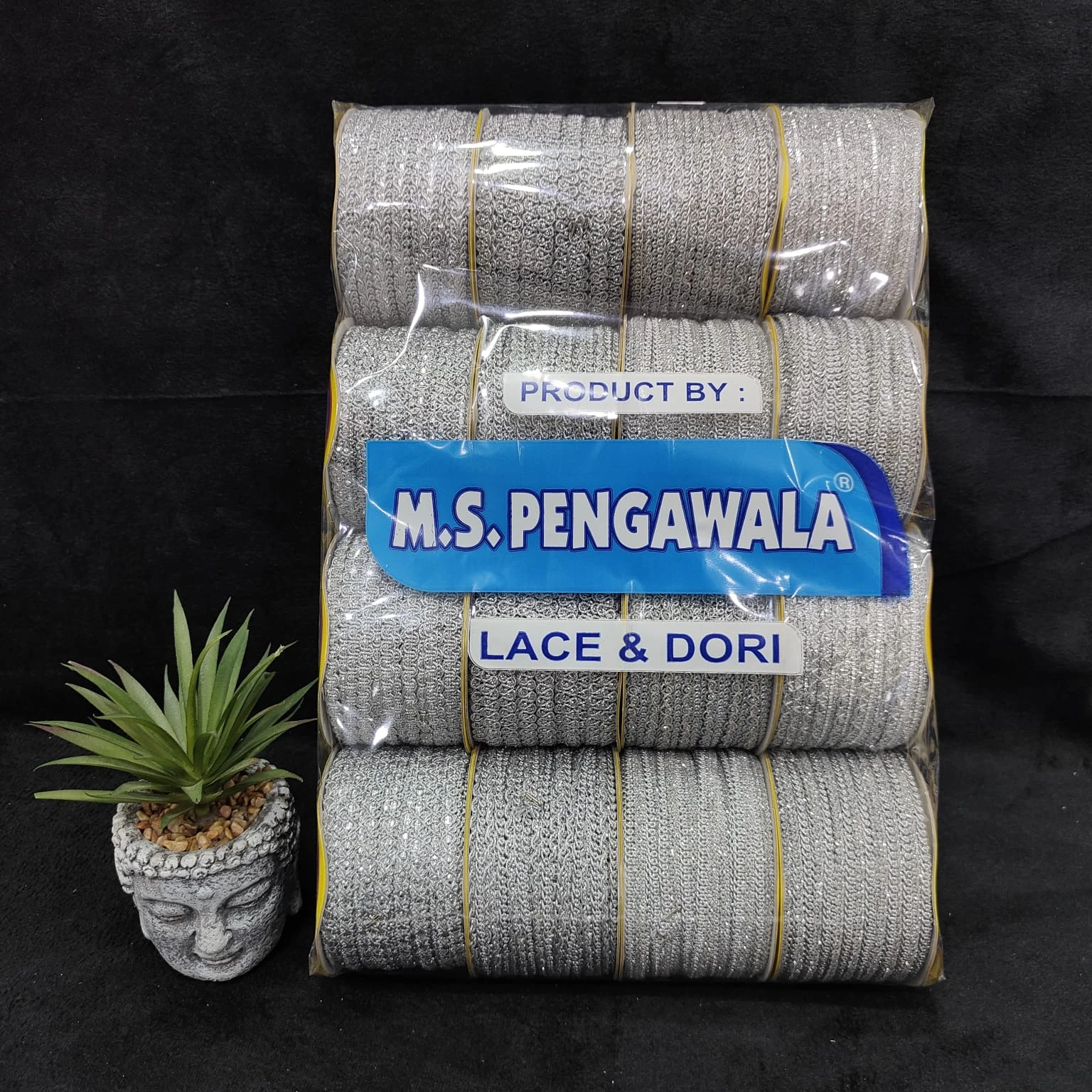 M.S. Pengawala Designer Silver Lace & Dori – 18 Meter Each Roll (16 Pieces Pack) | Per Piece Prize 55 Decorative Sewing & Blouse Border Lace